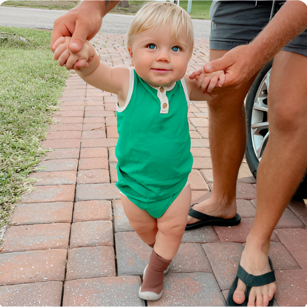 🟢 2. Talpă moale și flexibilăSe îndoaie ușor și urmează mișcarea naturală a piciorului, ajutând copilul să își dezvolte echilibrul și încrederea când învață să meargă.